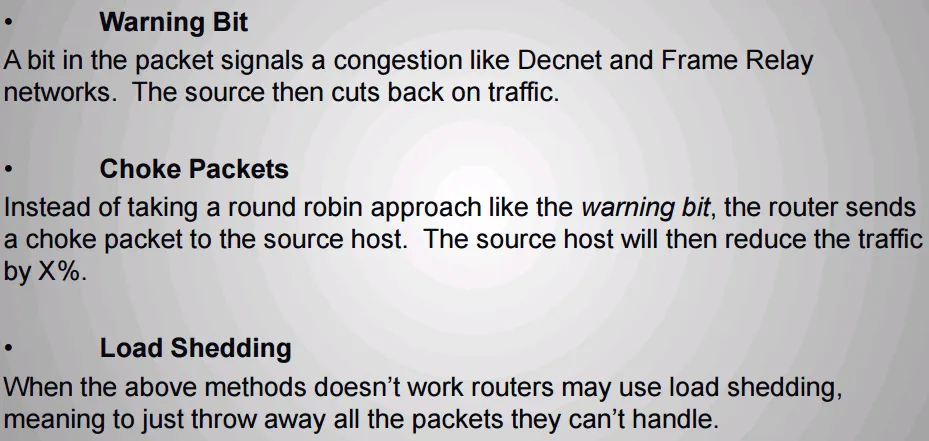 - Congestion control methods**:网络层拥塞控制方法**