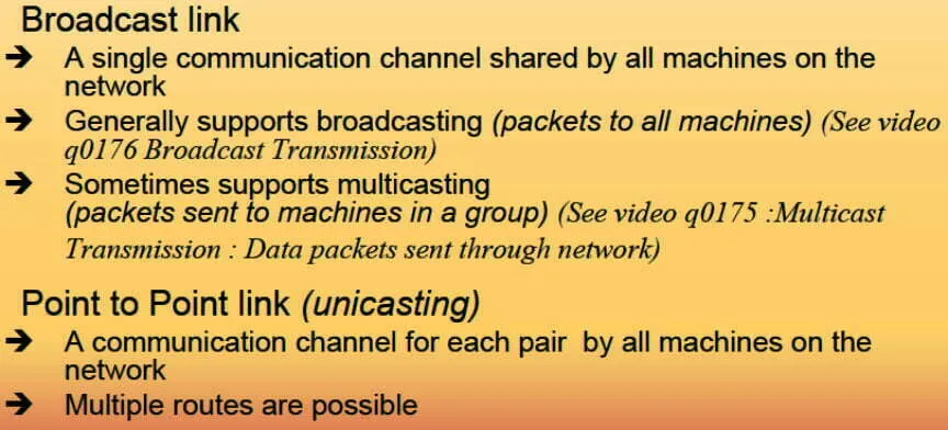 - ** Characteristics of each transmission technology****:****(broadcast, point to point)**每个传输技术的特点(广播,点对点)。