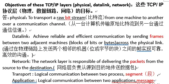 - ** Objectives of these TCP/IP layers (physical, datalink, network):这些TCP/ IP****协议层(物理,数据链路,网络)的目标。**